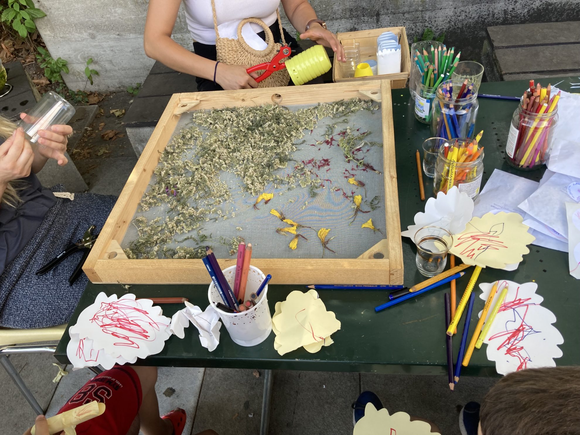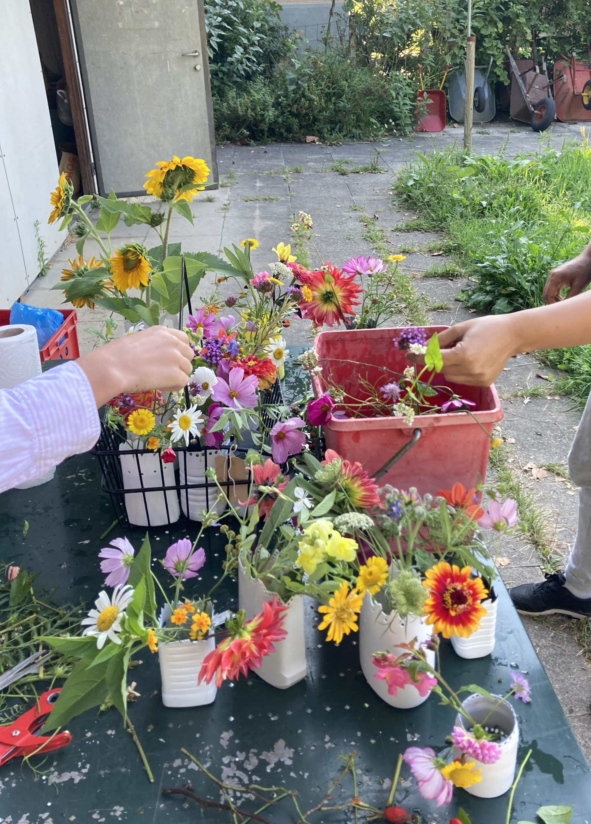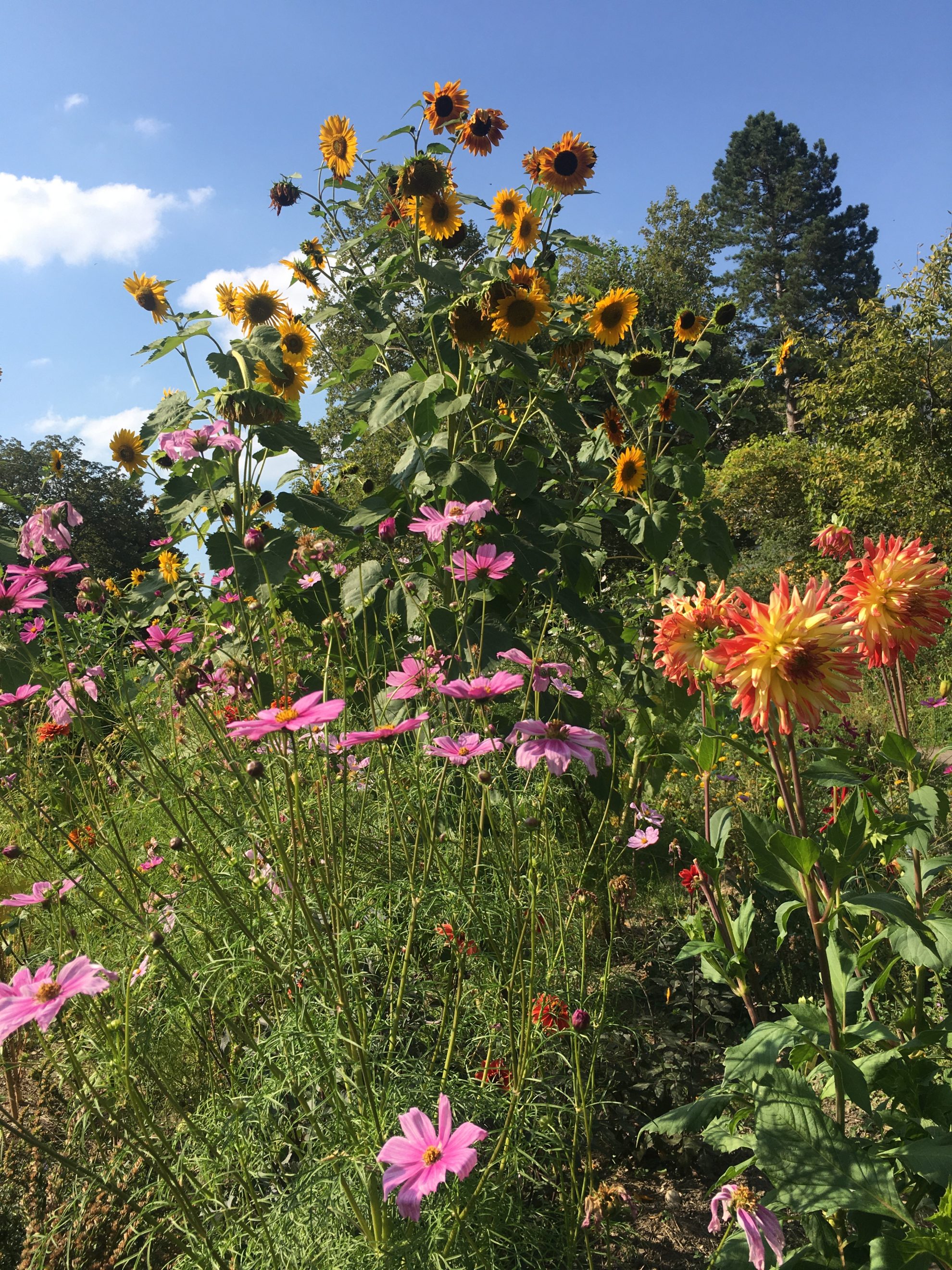 Die Blumen sind die Protagonistinnen der Beete. Ebenfalls wachsen Kräuter und Beeren. Auch Saatgut von Blumen wurde geerntet. Für viele Menschen im BAZ und andere Geflüchtete ist das Blumenfeld am Fluss Ausflugsziel für botanisch/kulinarische und zeichnerisch/malerische Workshops und dient als Erholungs-Ort.